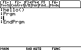 :hello() :Prgm :Disp "Hello" :EndPrgm